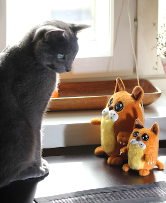 The smaller is about the size of an iPhone. The bigger one is pretty much the same height as an iPad. The material is very fluffy, just like a real Gebetto!